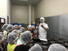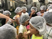 最後は、ひざつき製菓でせんべい作りの様子を見学しました。実際に出来たてのおせんべいも食べさせていただき、子どもたちは楽しく見学することができました。