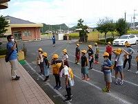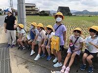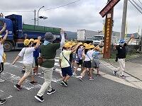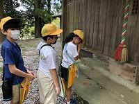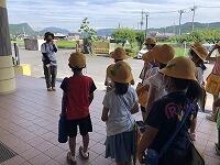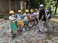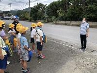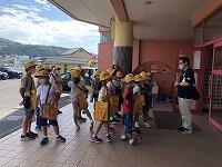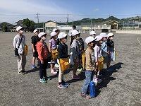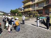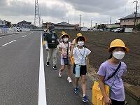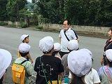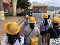暑さ対策のため、外ではマスクを外して歩くことと、こまめに水分補給をすることに注意して、「ふるさと探検隊」の出発です