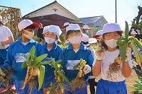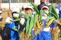 3年生が宮ネギを収穫しました。