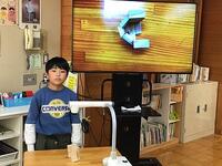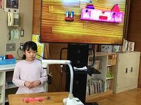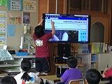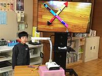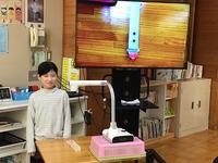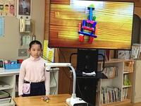 いろいろな使い方ができるので、とても便利です3年生は、算数の時間にも活用していましたよ。今日はプリントの答えの〇つけをするために、教師用タブレットを使って、大型テレビに写しながら、1問ずつ確認をしていました。子どもたちは、自分のプリントと同じ問題が写し出されるので、とても分かりやすいですね