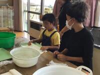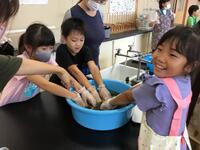 午後は、洗濯板を使っての洗濯体験!!力のいる作業に苦戦しながらも、みんなで協力しながら楽しく活動することができました。