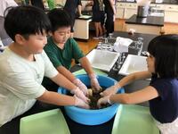 生の小麦や大豆を触ってみたり、もろみを少し舐めてみたりと発見がたくさんあった授業になりました。子どもたちも、博士と一緒に楽しんでいました