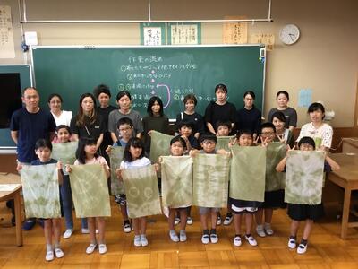 総合「ふるさと探検隊」の活動の一環として、PTA親子活動で「さしも草染め物体験」を行いました