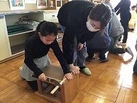 昔の人が使っていた道具を説明してもらったり、実際に体験したりしました