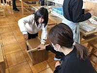 班に分かれて、家の人と事前に相談してきた商品を探します。