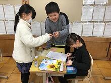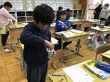 アシストネットボランティアの方と、地域コーディネーターの方が2名で、ご指導に来てくださり、3年生の教室で作りました。