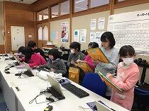 ボランティアの方が、子どもたちの好きそうなキャラクターの絵入りのカードを用意してきてくださって、それを使って「千塚小ならでは」の「たった一つしかない」しおりを作りました