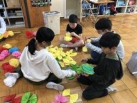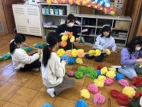 4年生が、「6年生を送る会」や卒業式のとき等に使う花のアーチや会場に飾る「花」を作っていますイベントみんなで役割を分担しながら、協力して作ってくれていますひらめき