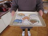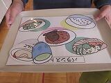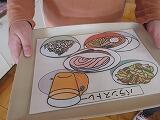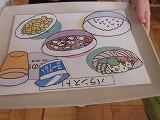 ↑ はじめに、一人一人おぼんをもって、好きなように料理の紙をとっていきました。