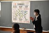 ↑ そのあと、主食、主菜、副菜について先生から教えてもらい、自分の選んだ食事のバランスを見直しました。