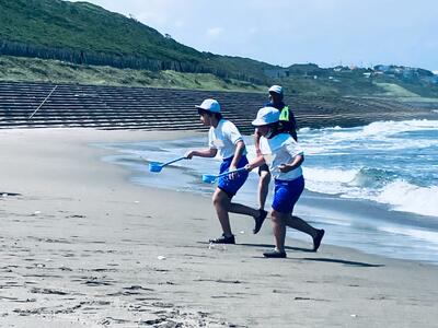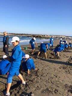 2日目は、砂浜活動を行いました!皆川城東小、寺尾小、吹上小と一緒に行いました!