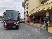 お昼は雨のため、バスの中ですが、みんな元気です。