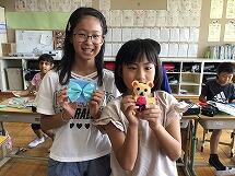 裁縫ではボランティアの皆様に御協力頂き、玉留め・玉結び・並縫いや本返し縫い・ボタン付け等を学習しました。初めての裁縫でしたがボランティアの方々が丁寧に教えてくださったので、2時間ほどでとても上手になりました。2学期にはフエルトを使った小物作りに挑戦します。