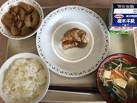今日の給食は、ごはん、牛乳、焼き鳥風煮、わかめとキャベツの酢の物、じゃがいものみそ汁です。
