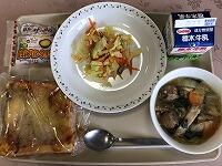 今日は白菜をたっぷり使ったスープが出ています。白菜はもともと、中国が原産の野菜です。中国では、大根・豆腐と合わせて、「養生三宝」とよばれています。体調を崩しがちな、冬の風邪予防や免疫力アップに最適な野菜です。白菜のおいしさと栄養がたっぷり詰まったスープを飲んで、カゼに負けない体をつくりましょう。