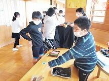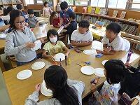 昼休みには【工作教室】を行いました。傘袋ロケット・紙皿フリスビー・紙コプターの3種類があり、それぞれ図書委員会の児童が本に載っている作り方を説明しながら楽しい時間を過ごしました。