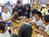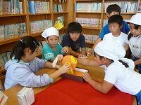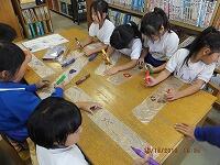 図書室では「みんなで作ろう 楽しい図書室」を目標に、今日から毎週火曜日に図書室の飾り作り体験を始めました。