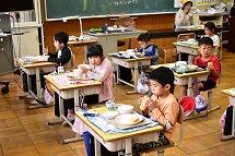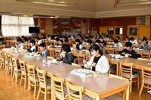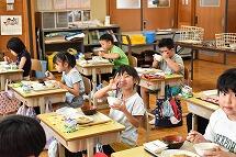 美味しい給食を食べながら、朗読に聞き入る子どもたちの姿が見られました