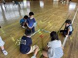 1年生は、図工の時間にグループの友達とペットボトルのキャップを並べる活動を行いました。その活動の中で、「家のかたちに並べてみたい」「大きな四角形を作ってみたい」と考えながら、友達と仲良く並べることができました。