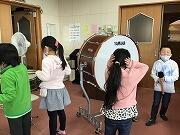 1年生は、音楽の授業に、タンブリンやトライアングル、大太鼓などの楽器を叩いて音を出すことに挑戦しました。「こんな音が出るなんて知らなかった。」と嬉しそうに話してくれました。