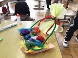 1年生は、図工の時間に「くしゃくしゃかみから大へんしん」を行いました。おはな紙を優しくまるめたり、ねじったりして自分の作りたいものを作り上げました。「紙ってこんなにくしゃくしゃになるんだね。」と多くの子どもたちが驚いていました。楽しく活動することができました。