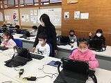1年生は、初めてタブレットで学習を行いました。指を使ってタッチしたり、マウスを使ってクリックしたりする練習をしました。とても楽しそうにタブレットを扱い、学習をしていました!