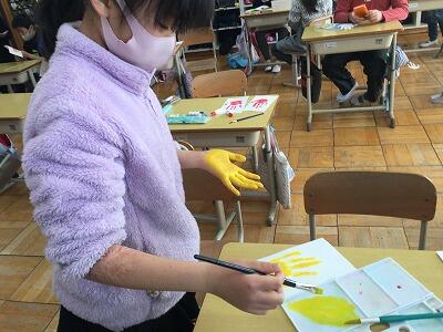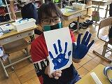 ②学級目標の掲示物づくり ~手形づくり・お掃除~