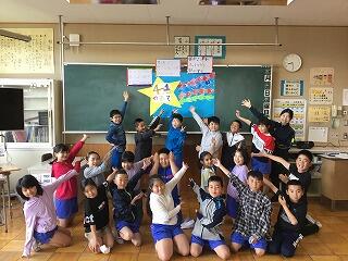 掲示物のテーマは、宇宙です。6年生に「中学校という新しい世界に出発してほしい!!」という4年生の思いが込められています。きっと、6年生へ4年生の思いが届くはずです。