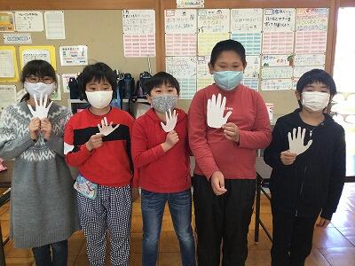 ②学級目標の掲示物づくり ~手形づくり・お掃除~