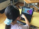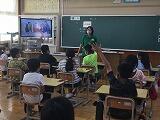 授業始めに毎回「フォニックス」という活動をしています。文字と音声を関連づけ、さらに動きとも一致させる活動です。絵の中から、アルファべットを探し出すのが、子どもたちは大好きです。タブレットを使いながら、楽しく活動しています。