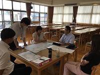 次に、1学期に実施した「QU検査の結果分析」を行いました。低・中・高学年のブロックごとに話し合い、SCの先生にも加わっていただきながら検討しました