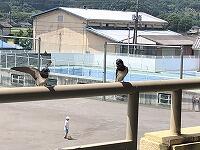 急に空模様が変わり、勢いよく雨が降り出しました。10分ほどで、校庭は湖のように…
