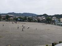 業間の時間に、全校児童が校庭に出て並び方の確認をしました。