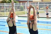 リレーのときはもちろん、演技の間は、暑さ対策のため、できるだけマスクを外して行うので、『間隔を開けて 会話をしない』よう指導しています。種目の間に手洗い・うがい、手指消毒、水分補給をこまめに行いながら、感染症と熱中症の予防に努めてまいります