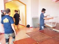 【屋根裏倉庫から机いすの運び入れ】