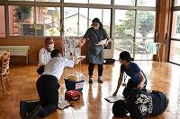 【ALSOKの方を講師にAEDと心臓マッサージの体験】