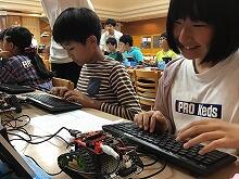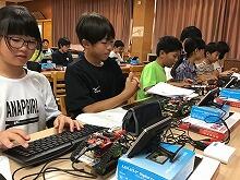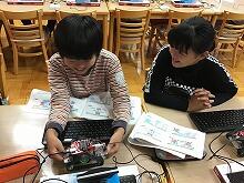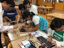 子どもたちはパソコンを通して出した指示通りに、LEDランプが点いたり消えたりすることに、驚きと喜びの声をあげていました