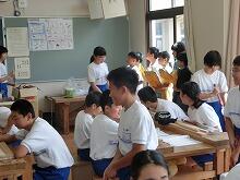 7月11日に6年生が吹上中学校の授業見学に行ってきました。中学生の学校の様子を見ることができ、また、生活指導の先生から吹上中学校で育てていきたい力などの話を聞いて、中学校生活に向けて意識を高めることができました。 中学校の先生に言われた、「時間を守る」「話を聞く姿勢」「あいさつ」に特に力を入れていきたいです。