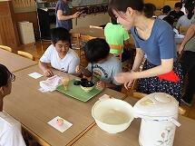 6年生の総合の時間で「着付け体験」を行いました。講師の先生を招いて、浴衣の着方、お辞儀や座り方のマナーについて学びました。一人一着浴衣を用意してくださり、浴衣のたたみ方、帯の結び方などを丁寧に教えていただきました。男の子も女の子も多くの子が初めての浴衣に喜んでいました。