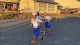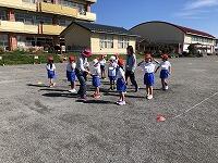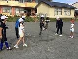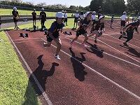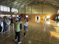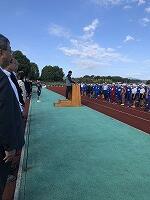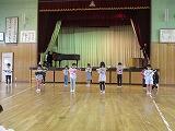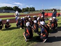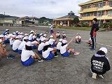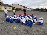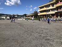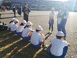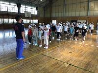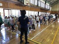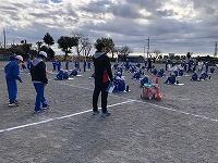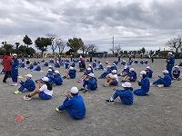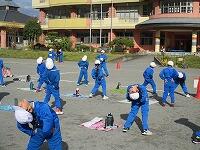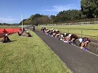 朝早くから集まって、校長先生とキャプテンの話を聴いてから、身体慣らしをしました。