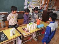 1年生が、理科室に移動したので、一緒に行ってみると…なんと、算数「くらべかた」の学習をしていましたよ