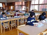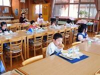 ランチルームでは、新5・6年生がそろって給食を食べています。