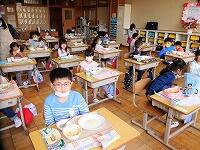 1年生は初めてのランチルームでの給食です。嬉しそうに給食を食べていました。