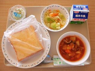 今日の給食は、栃木市産のトマトを使ったスープが出ています。実は、トマトと卵は相性がよい組み合わせです。トマトに含まれるビタミンと卵のタンパク質は、病気に負けないための免疫力を高めてくれます。
