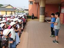 保健安全委員会が司会をします。今日の合い言葉 「いかのおすし」を全校で復唱しました。