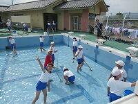 みんなできれいなプールに入れるよう、すみずみまで一生懸命お掃除しました。