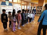 業間の時間に、1・2・3年生がランチルームに集まって、卒業式の前日に行う「お別れの式」の練習をしました