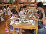 1年生は、給食が始まってから2カ月ちょっとですが、給食の準備をしたり、ごはんやおかずをよそったり、後片付けをしたりと、いろいろなことが身についてきました