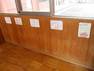 学校では、給食委員会の子どもたちが描いたポスターを、ランチルーム前のろうかに貼りました。