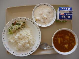 今日は皆川城東小のリクエストメニューです。 主食・主菜・副菜をしっかりととのえ、野菜や、カルシウムのとれるヨーグルトをつけた、バランスのよい献立です。